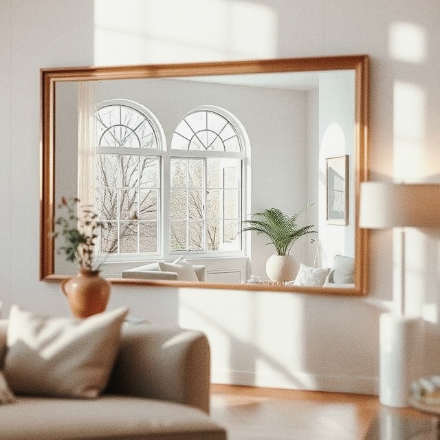 - Lustro za sofą: Dodaje głębi i odbija dekoracje.